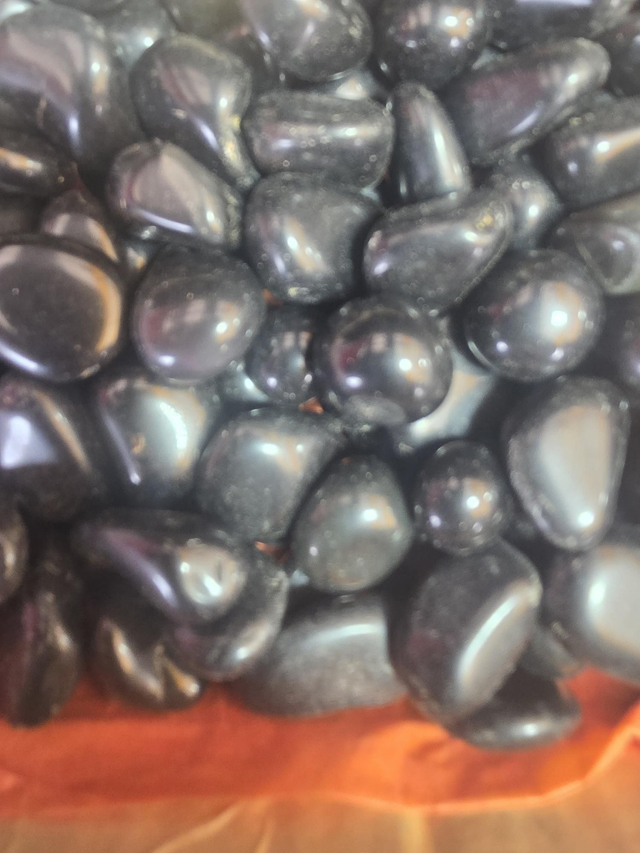 Black obsidian tumblestone (some sheen mixed in also!)