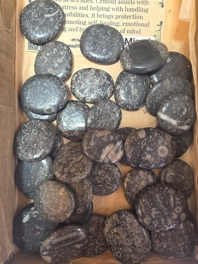 Fossilised remains of crinoids, AKA sea lillies. Origin- China