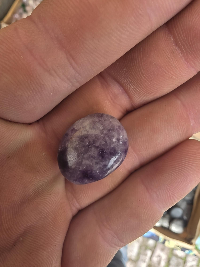 Purple mica, lepidolite, from Afghanistan. Said to help with emotional pain and stress.