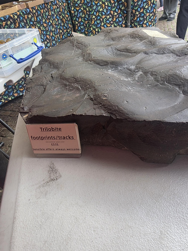 This artefact is a massive iron-rich fossil mud with clear trilobite footprints/tracks covering the surface. Multiple separate individuals have left their imprint on seabed over 600 million years ago. For perspective, these footprints are from 200,000,000 years before dinosaurs roamed the earth.